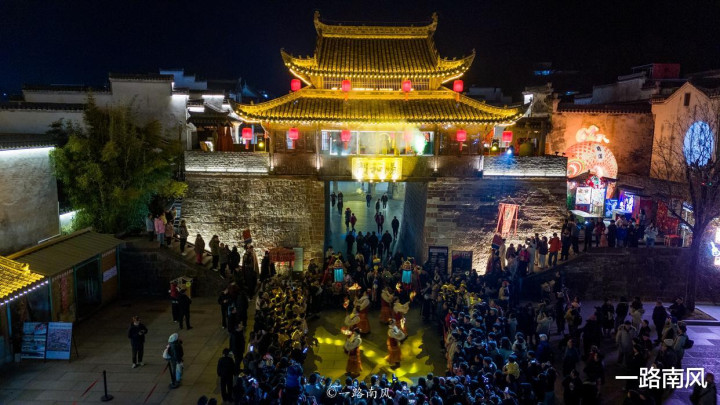 从白天到夜晚,从安静到热闹璀璨,不同时间段的徽州古城,呈现出不同的人文美感。