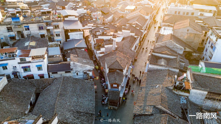 Y字形老街是古城的标志性打卡点,傍晚夕阳西下之时,光影最是迷人。